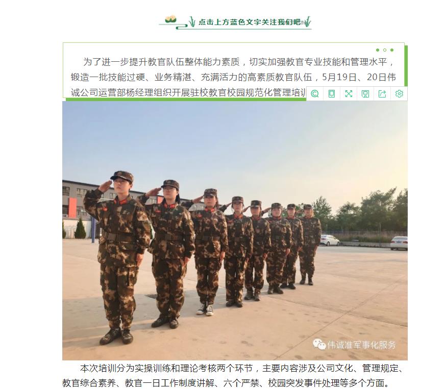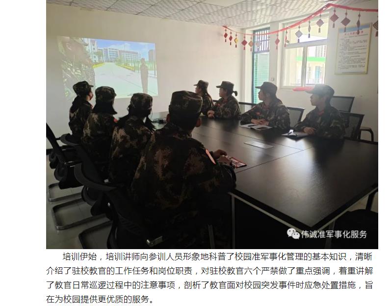 5月19日、20日偉誠公司運營部楊經理(lǐ)組織開(kāi)展駐校(xiào)教官校(xiào)園規範化管理(lǐ)培訓。