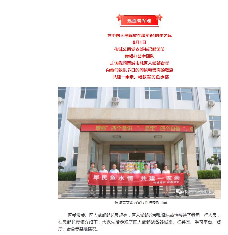 【八一建軍節】軍民魚水(shuǐ)情,共建一家(jiā)親|偉誠黨支部前往城區(qū)人(rén)武部開(kāi)展“八一”慰問活動