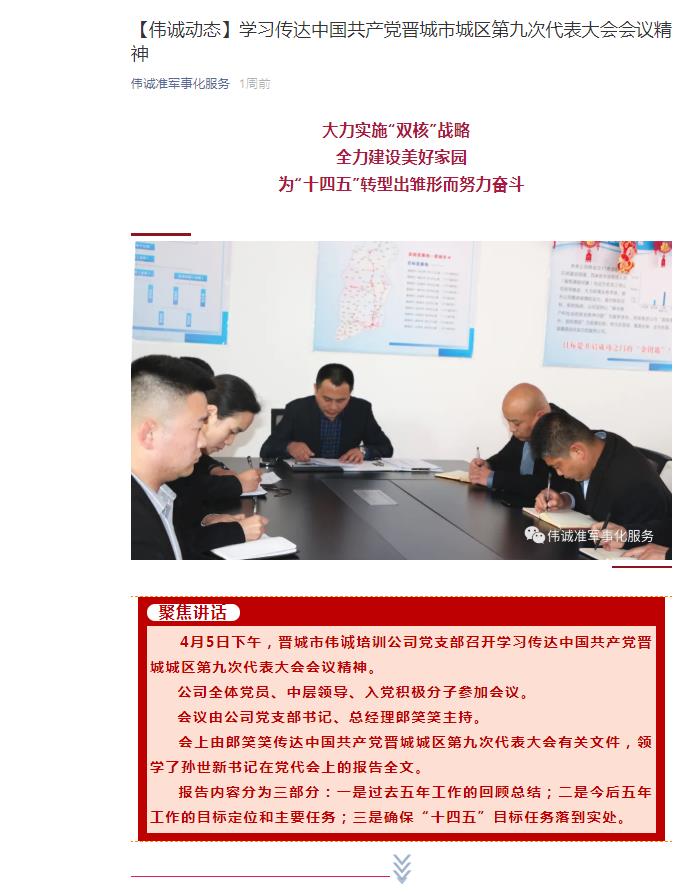 【偉誠動态】學習傳達中國共産黨晉城市城區(qū)第九次代表大(dà)會(huì)會(huì)議精神