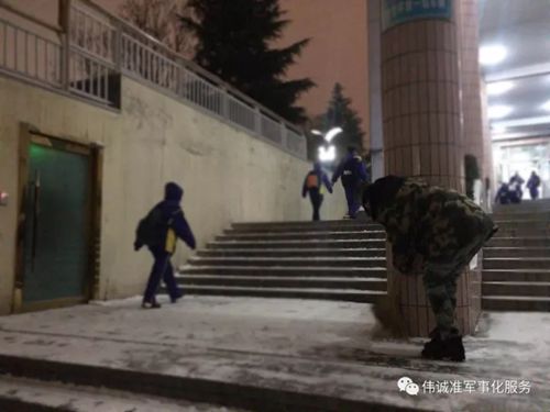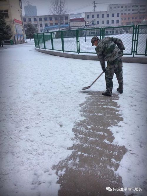 因為(wèi)擔心孩子們行(xíng)走的安全,偉誠教官早早開(kāi)始清掃校(xiào)園的積雪~~~