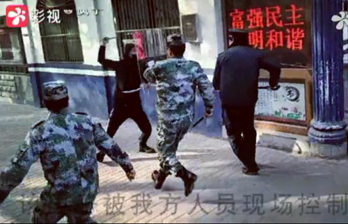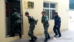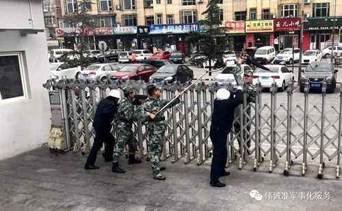 實驗中學教官團隊與保安團隊聯動,進行(xíng)校(xiào)門(mén)口防暴演練。