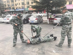 澤州一中教官團隊聯動保安團隊,充分利用警棍、鋼叉等器(qì)材進行(xíng)了校(xiào)門(mén)口防暴演練。