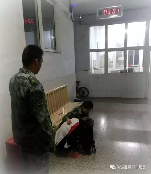 到了醫(yī)院之後,教官依然默默地陪伴在這位女生(shēng)的身邊,親切地安慰她,陪她一起蹲在地上(shàng),和(hé)她一起面對醫(yī)生(shēng)······