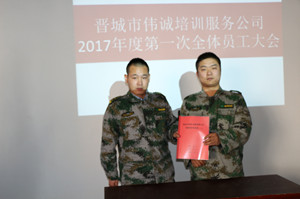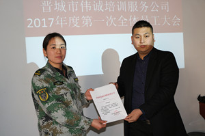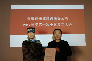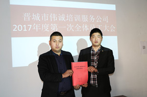為(wèi)了做(zuò)好新一年的收心工作(zuò),激勵全體(tǐ)員工以飽滿的熱情投入到新一年的工作(zuò)中,晉城市偉誠培訓服務公司于2月12日下午兩點順利召開(kāi)了2017年第一次全體(tǐ)員工大(dà)會(huì)。