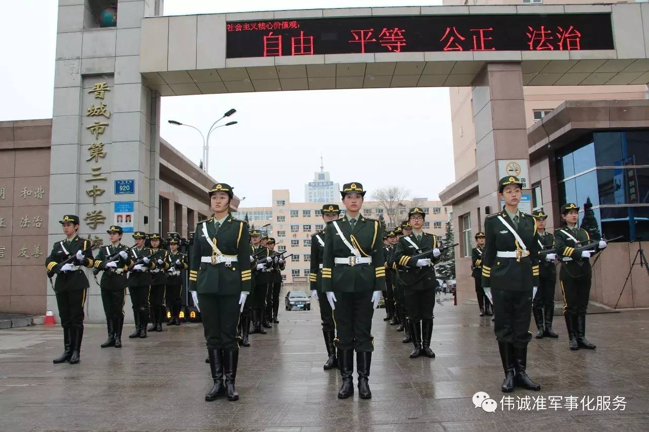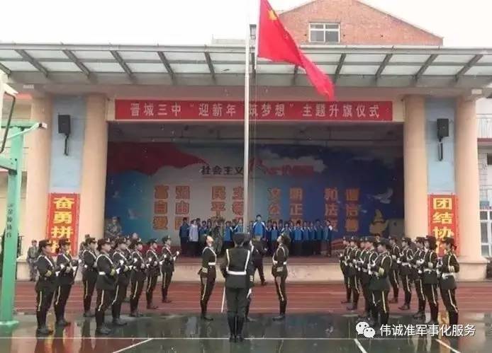 在晉城三中剛剛舉行(xíng)的“迎新年 築夢想”主題升旗儀式上(shàng),身着戎裝的女子國旗護衛隊精彩亮相。