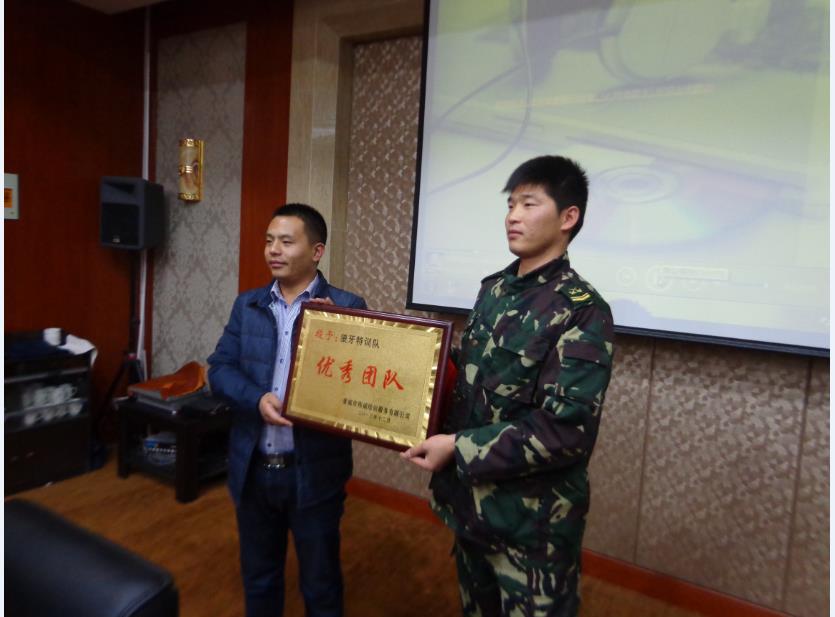 董事長郎笑笑為(wèi)鳳鳴中學團隊頒發“優秀團隊”獎牌