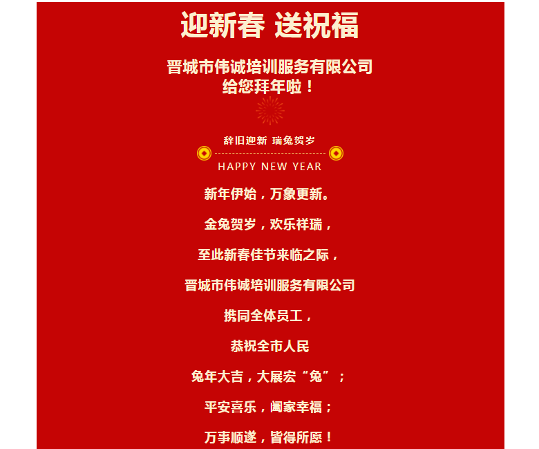 迎新春 送祝福丨壽光金藍領培訓服務有限公司給全市人(rén)民拜年啦!
